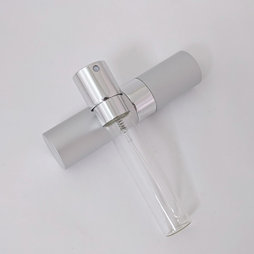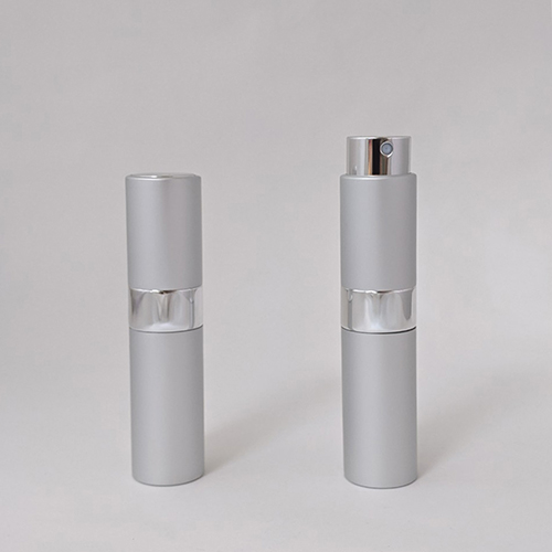 You are here: Home » Products » Cosmetic Stock » Matte silver color retractable 8ml perfume atomizer with shiny middle ring custom logo printing travel size perfume bottle